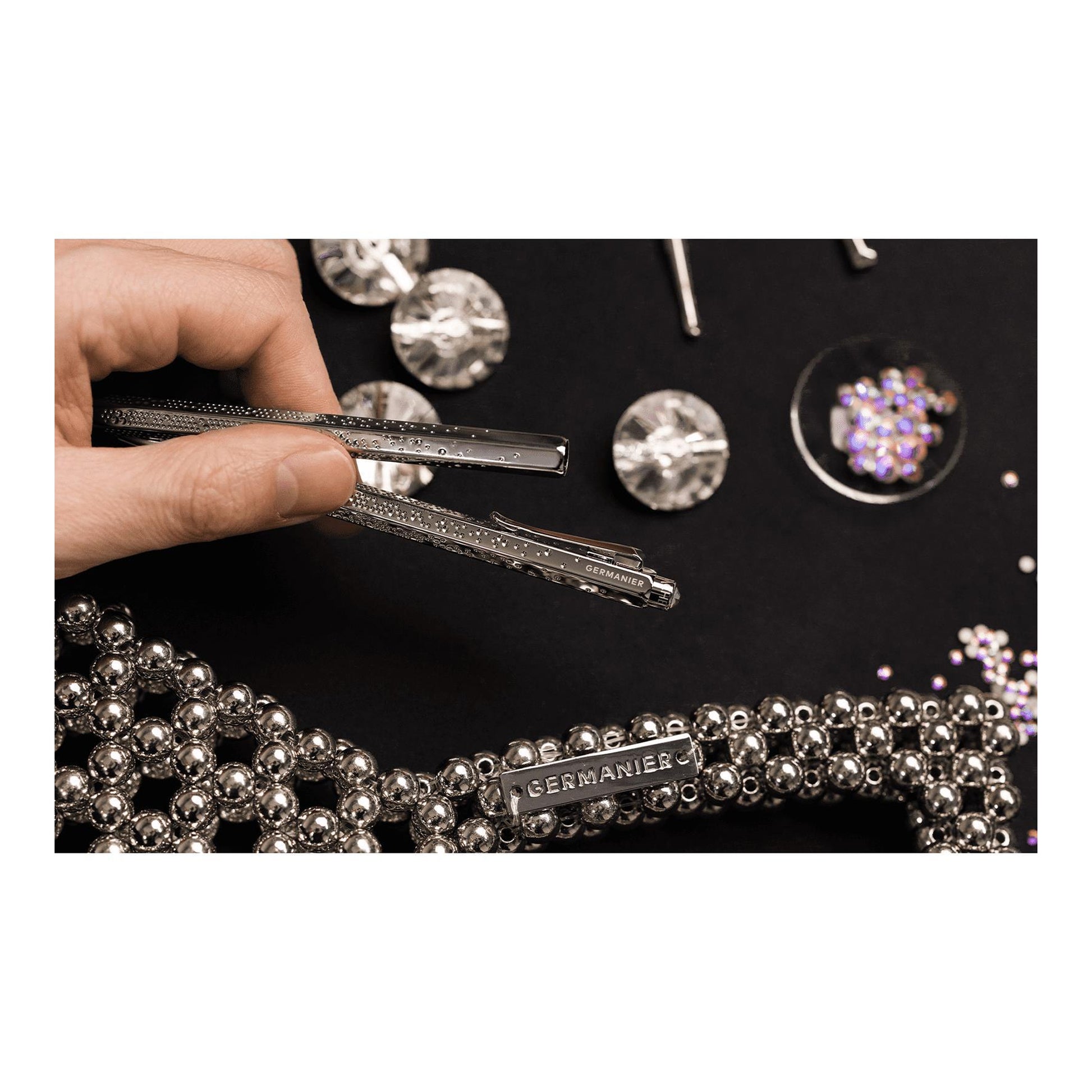 The Special Edition Les Fulgureuses captures Germanier’s fearless energy through unique Writing and Fine Arts instruments. The Ecridor ballpoint pen features a guilloché pattern reminiscent of beaded textures and is topped with a holographic glass crystal. It comes with a pouch made of upcycled neon yellow leather. Each piece is presented in a reusable holographic case.