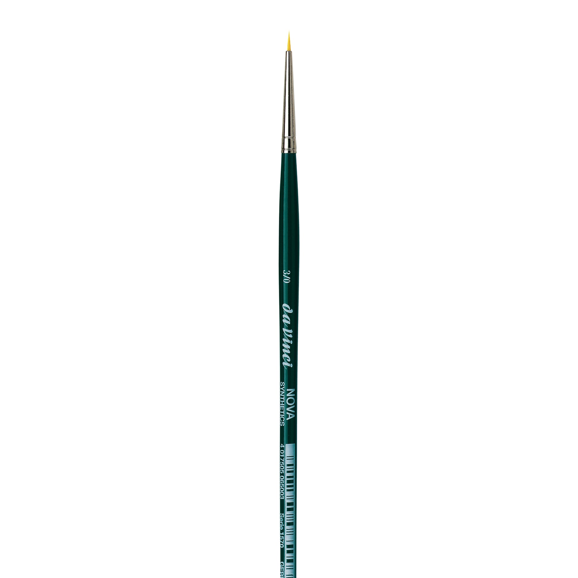 The NOVA Round brushes are short handled brushes, with green polish. Da Vinci Series 1570 brushes.