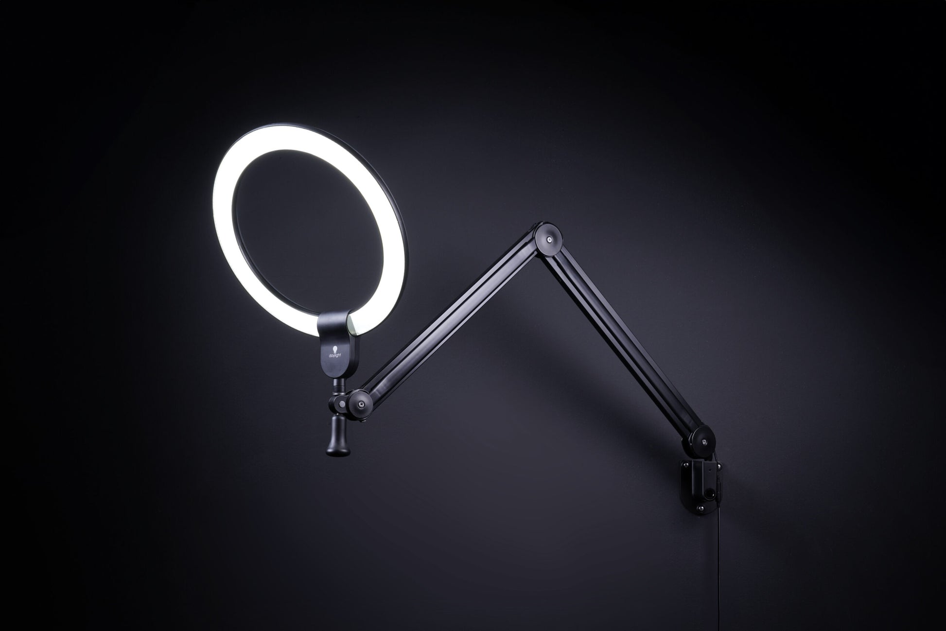 Unique bright and flexible ring light featuring a super smooth extendible arm for effortless positioning. Its continuous dimmer switch allows seamless adjustment of brightness levels. The pivoting ring joint directs light precisely where needed and the strong wall and table mount provides universal fixing on any flat surface.