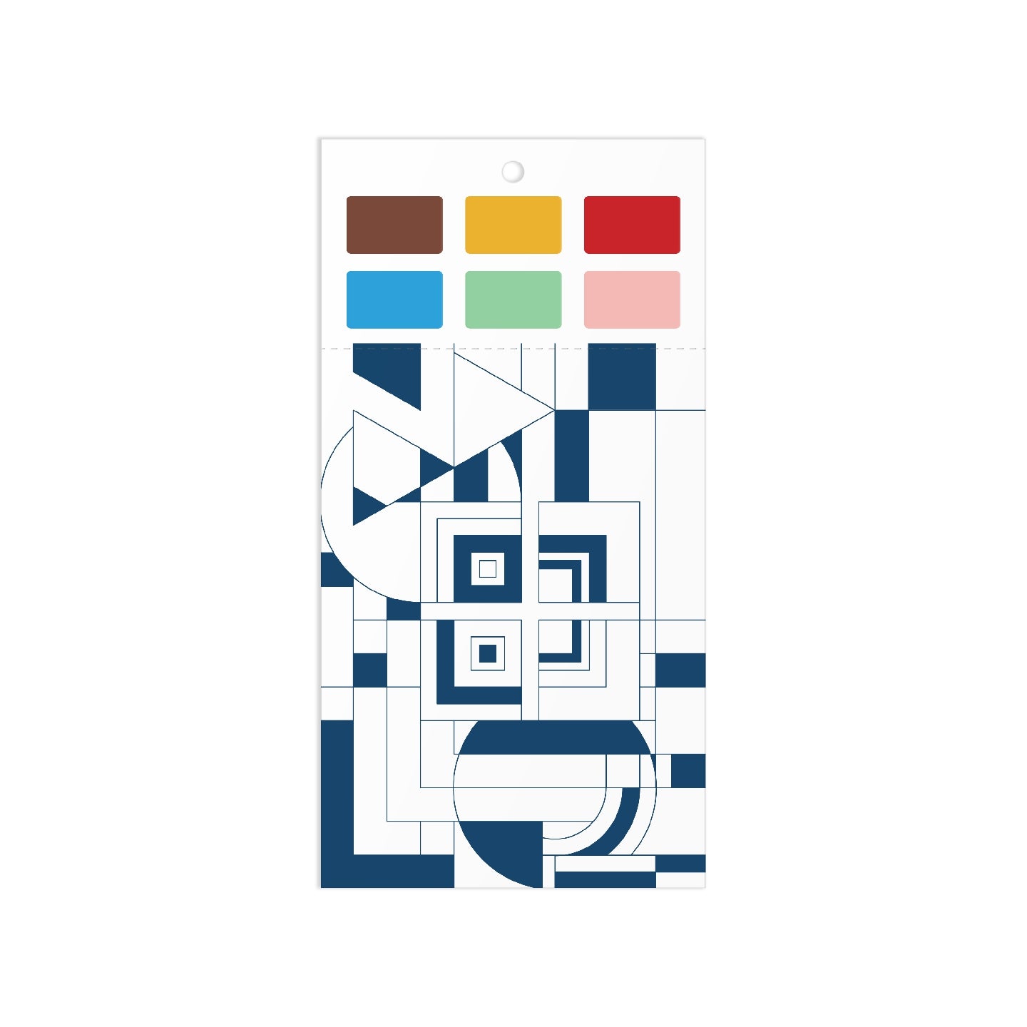 PAINT IN PRINT SET - The Frank Lloyd Wright Paint In Card Set includes a set of 6 cards featuring the iconic geometric designs of Frank Lloyd Wright that can be painted using the 6 colors embedded into the top of the card. Frank Lloyd Wright was an American architect, designer, writer, and educator. He designed more than 1,000 structures over a creative period of 70 years