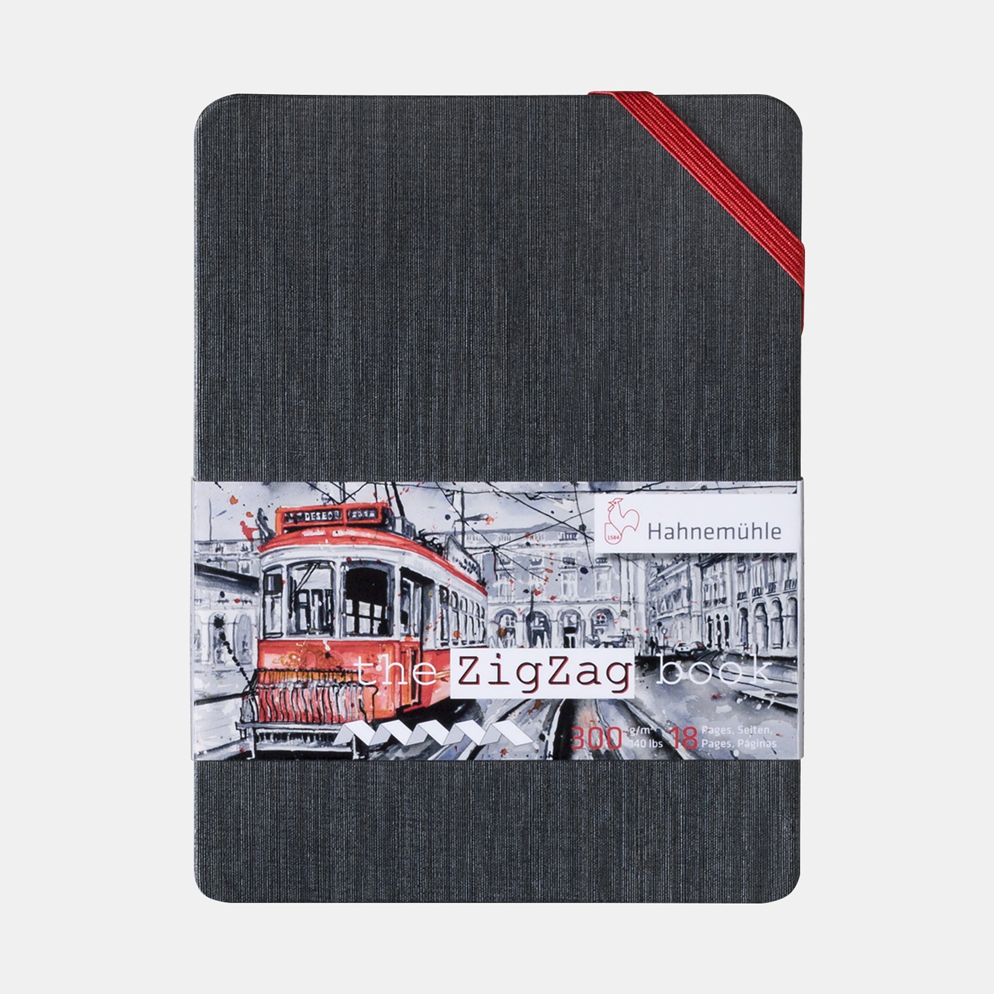 Rugged oversized book covers help to protect the content. Due to its durable cover, the ZigZag book is inured to outside influences. An eye catching red band in the upper right corner can be used to close the book securely. The rooster on the backside underlines the exclusivity of the Hahnemühle creative prowess.