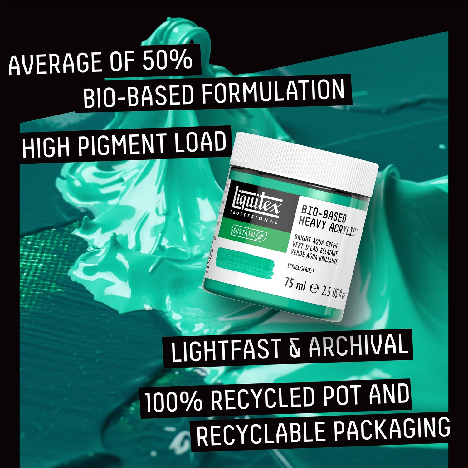 This is Liquitex Bio-Based Heavy Acrylic. Thick, loud, high-pigment color made with an average of 50% bio-based formulation. That means less petroleum, more natural and renewable ingredients, and zero compromise on performance.