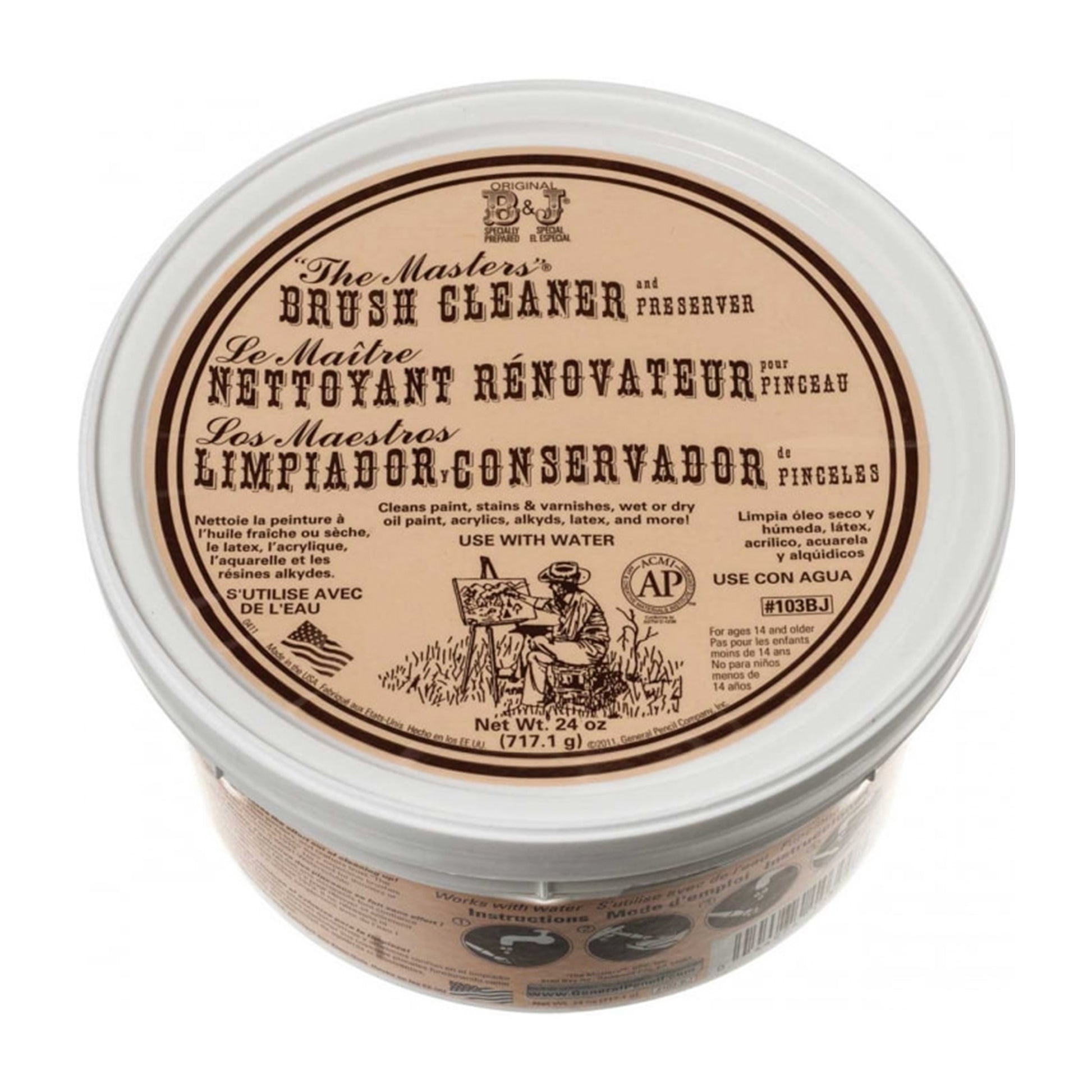"The Masters" Brush Cleaner and preserver is a non-toxic compound suitable for removing wet oil paint, dry oil paint, and watercolour and acrylic stains on your brushes. Simply rinse brush in warm water, swirl brush in compound and work into lather.
