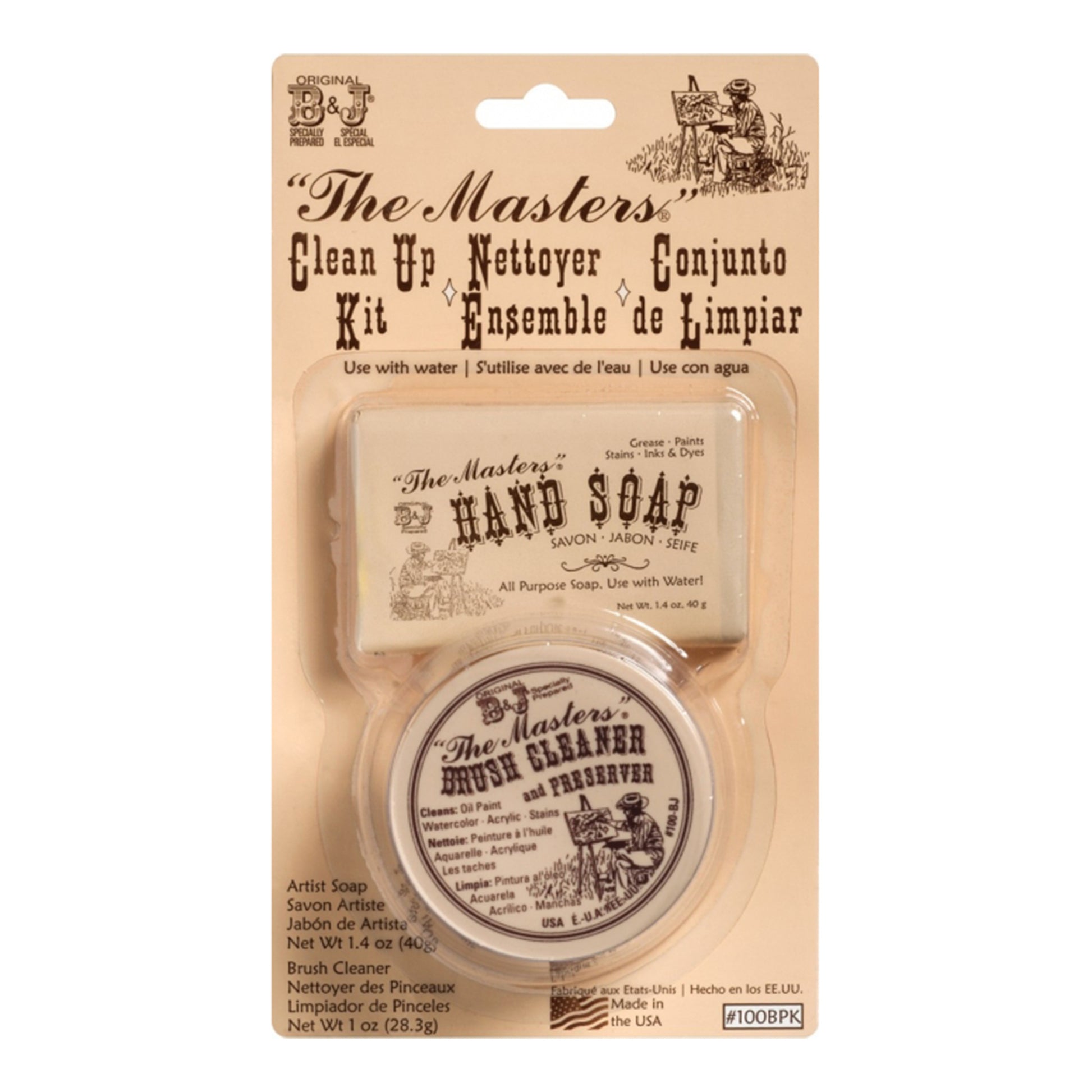 "The Masters" Hand Soap gently cleans and conditions hands. The B&J Formula is non-abrasive, yet effectively removes paints, including oil, inks, dyes, grass stains, grease, and grime. Perfect for cleaning up after painting, crafting, gardening, or even working on the car. Specially formulated, this soap makes cleaning up safe and easy, while keeping your hands soft and fresh smelling. Just wash with plain water. No need to use harsh chemicals and thinners.