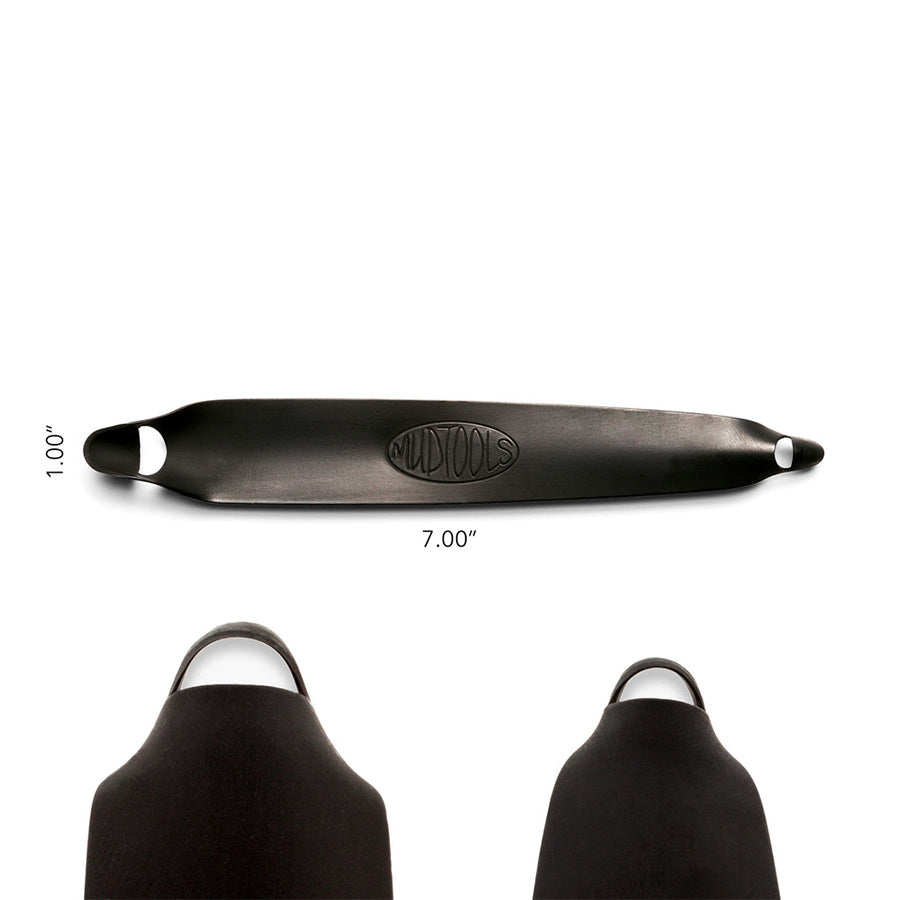 Made of high carbon steel and tempered to be very hard, the Dragtool is designed to grace the hand and make a fluted mark in the clay. One end cuts a wider flute than the other.
