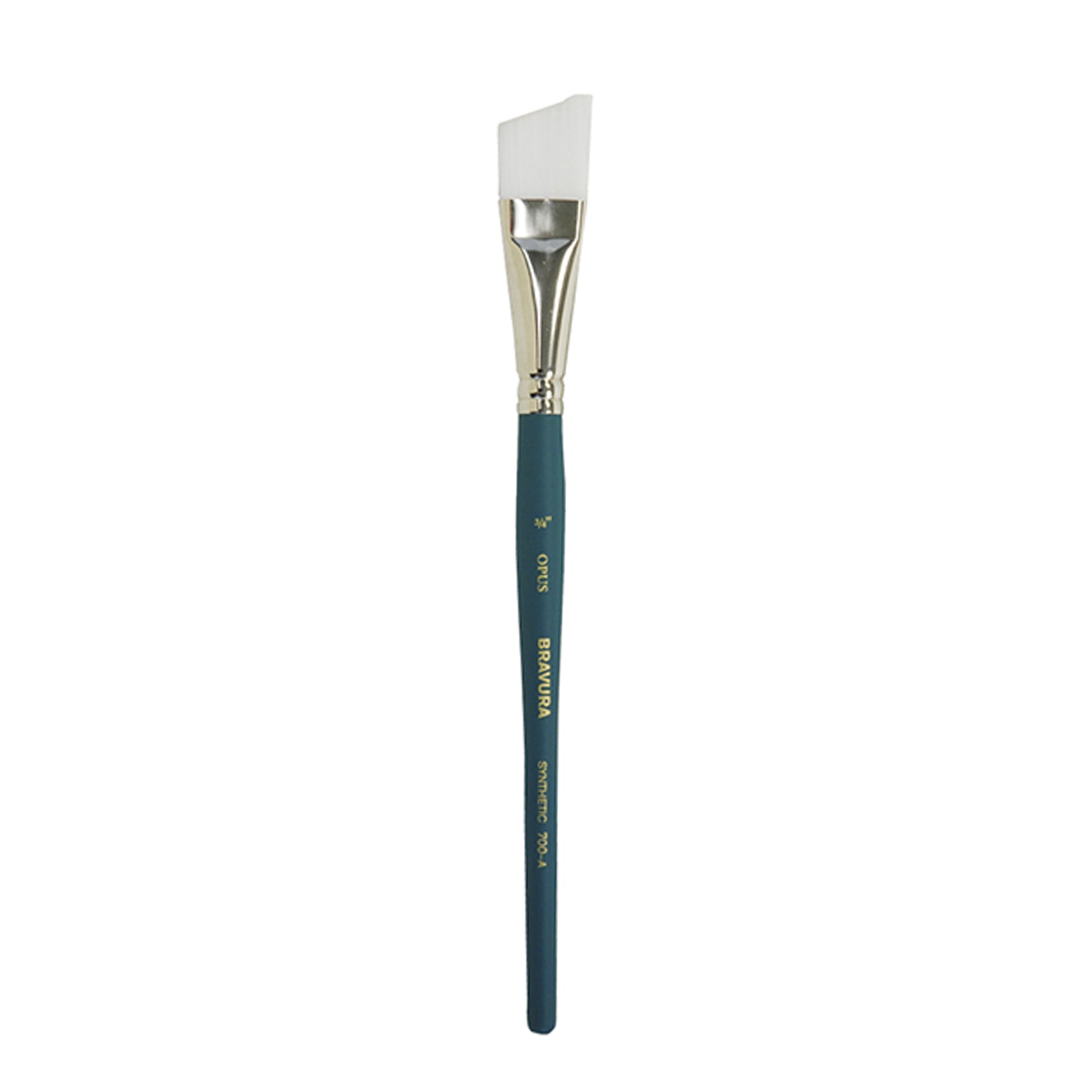 Opus Bravura Brushes are affordable short-handled acrylic brushes, ideal for working up close. Their white synthetic bristles have good snap and pointed tips, perfect for guiding medium viscosity paints (like fluid acrylics). The bristle softness allows for easy, dramatic modulation of paint strokes. Glued and crimped, seamless nickel-plated brass ferrules tie the whole package together.