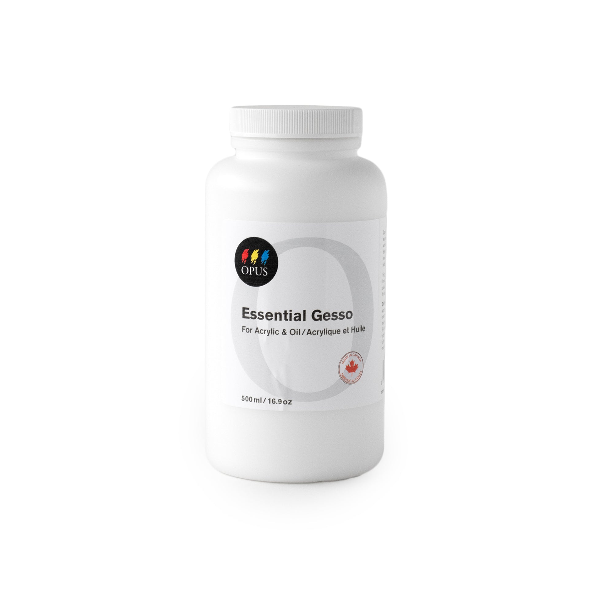 Opus Essential Gesso is an artist-quality gesso, perfect for preparing unprimed surfaces such as canvas, linen, wood and paper. This heavy-bodied, bright white gesso has maximum opacity, adhesion, and water-resistance, and dries to a non-yellowing, flexible matte finish. Opus Essential Gesso contains high levels of titanium dioxide, calcite grit, and acrylic resin. Apply 2–4 coats as desired.
