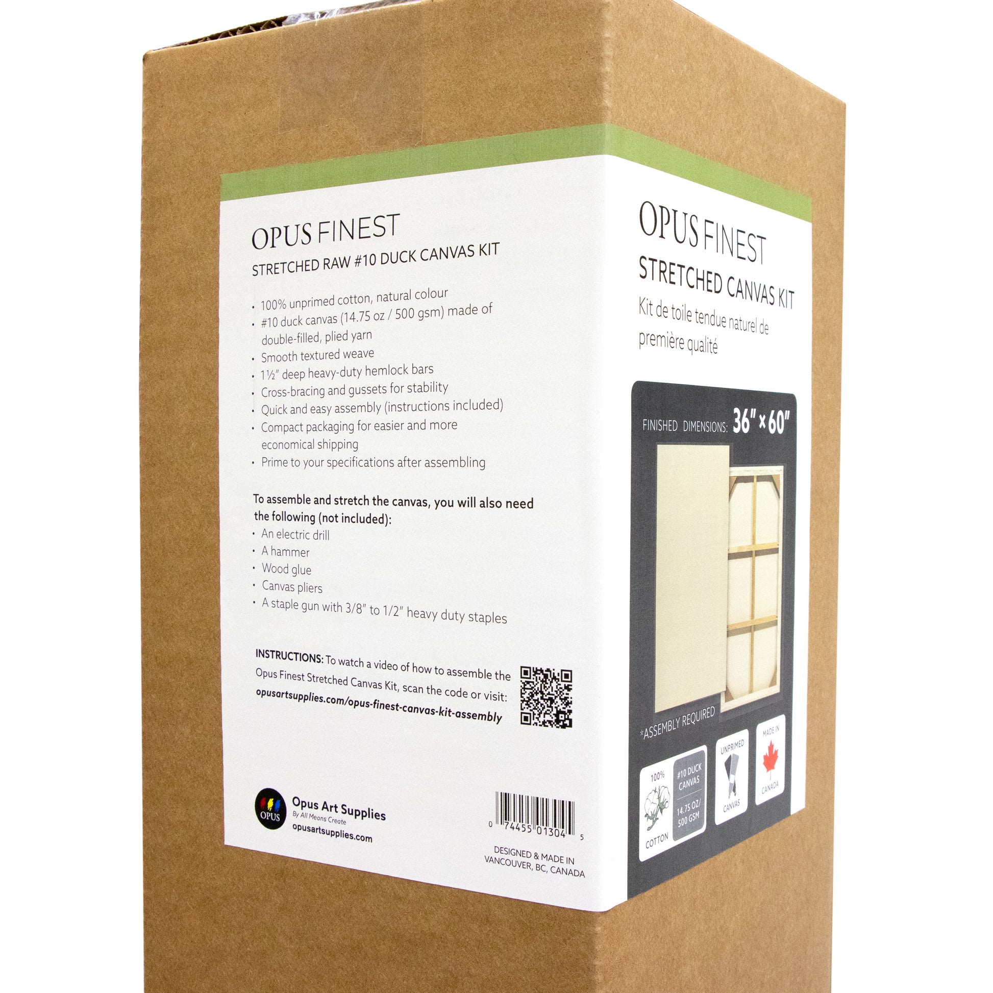 The Opus Finest Stretched Canvas Kit is designed for artists who value both convenience and craftsmanship. Each kit contains all the materials needed to build a professional-quality stretched canvas—simply assemble using your own tools. With clear, step-by-step instructions in both written and video formats, the process is straightforward, leaving you with a sturdy, high-performance surface ready for priming and painting.