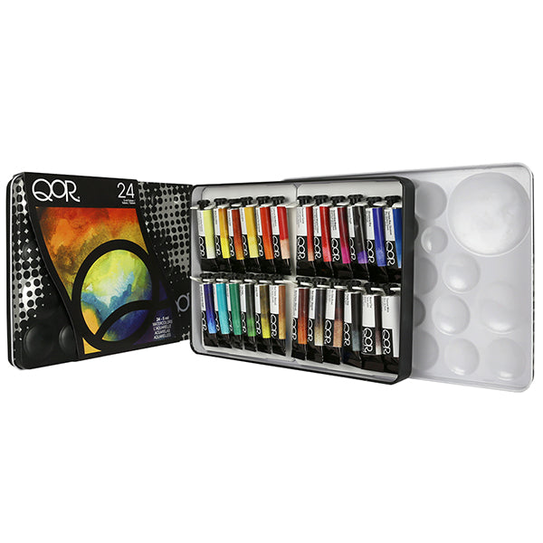 Using an exciting new binder called Aquazol¨, QoR Watercolours pack 2ñ5 times more pigment punch into each tube than watercolours that use traditional Gum Arabic binder. Aquazol¨ is crystal clear, allowing the brilliance and luminosity of the pigments to show to their highest potential, and reducing the colour-shift often encountered as watercolours dry.