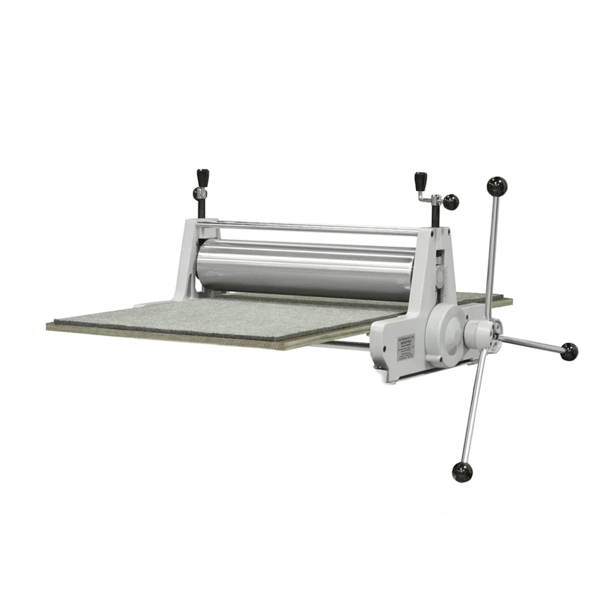 Jack Richeson’s Large Press Package is ideal for a variety of printmaking techniques. Made of welding tube steel and painted with black varnish, it is 23" and features steel rollers mounted on oscillating ball bearings. They are height adjustable, making it easy to adjust the printing pressure. The rollers measure 2 5/16". The Press package includes a phenolic plate and grey cushion. Phenolic Plate: 23 ⅝" × 36" × ½". Cushion: 22 ½" × 26" × ¼". Please note: Stand is sold separately.