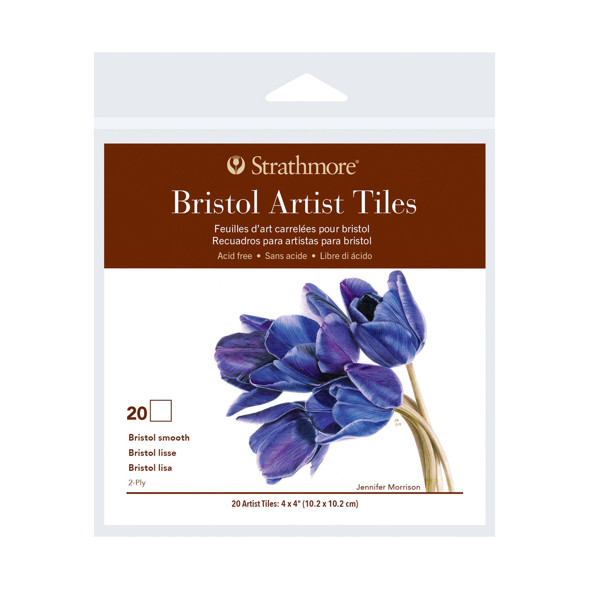 Strathmore's high quality 400 Series Bristol Smooth paper is now available in pre-cut, convenient sizes. Artist tiles are perfect for creating small pieces of art. Acid free, 2 ply.