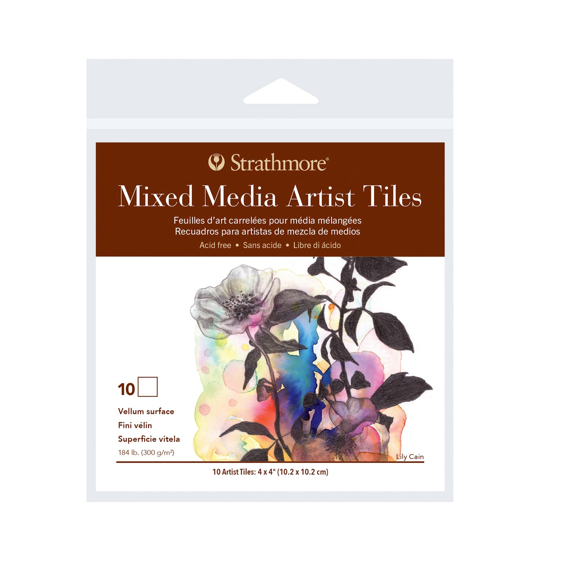 These artist tiles are Strathmore's heavyweight all-purpose 400 Series Mixed Media paper packaged in pre-cut, convenient sizes. Artist tiles are perfect for creating small pieces of art. Weight: 184 lb. / 300 g/m2