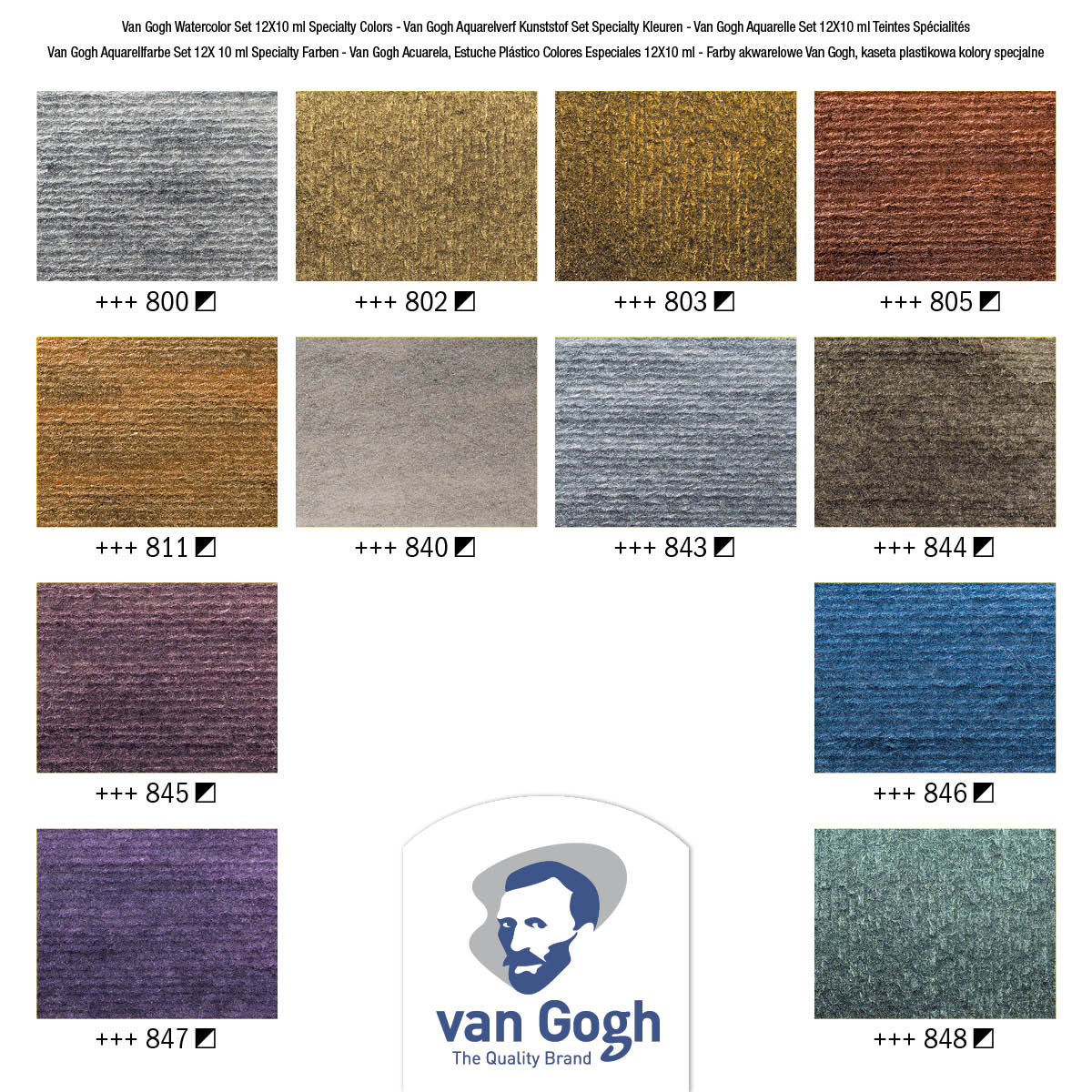 Van Gogh water colours are rated as a student and artist level paint range. They feature brilliant, transparent, and intense colours with high tinting strength. Most colours are rated with the highest degree of lightfastness +++ (100+ years under museum conditions) with a few colours rated just one step below at ++ (25-100 years under museum conditions). Thanks to the purity and uniform viscosity, these water colours are easy to work with and easy to mix.