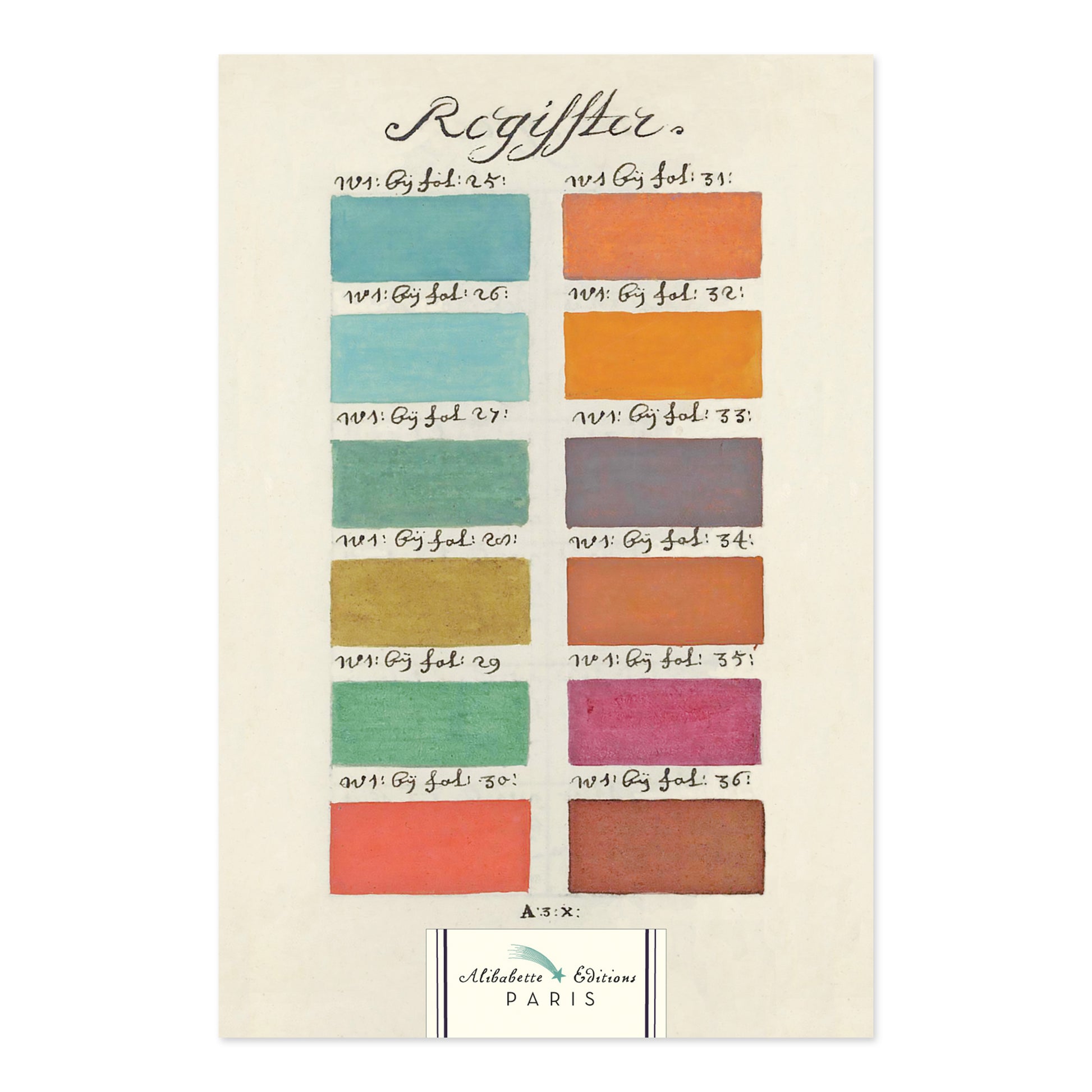 The Harmonie cover comes from the oldest known work on colour, by A. Boogert in the 17th century. The shortened title of being "Treatise on Colours used in Water-based Painting", the work is kept at The Bibliothèque Méjanes in Aix-En-Provence, France.