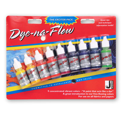 - Contains 9 Dye-Na-Flow paints with the following colours: