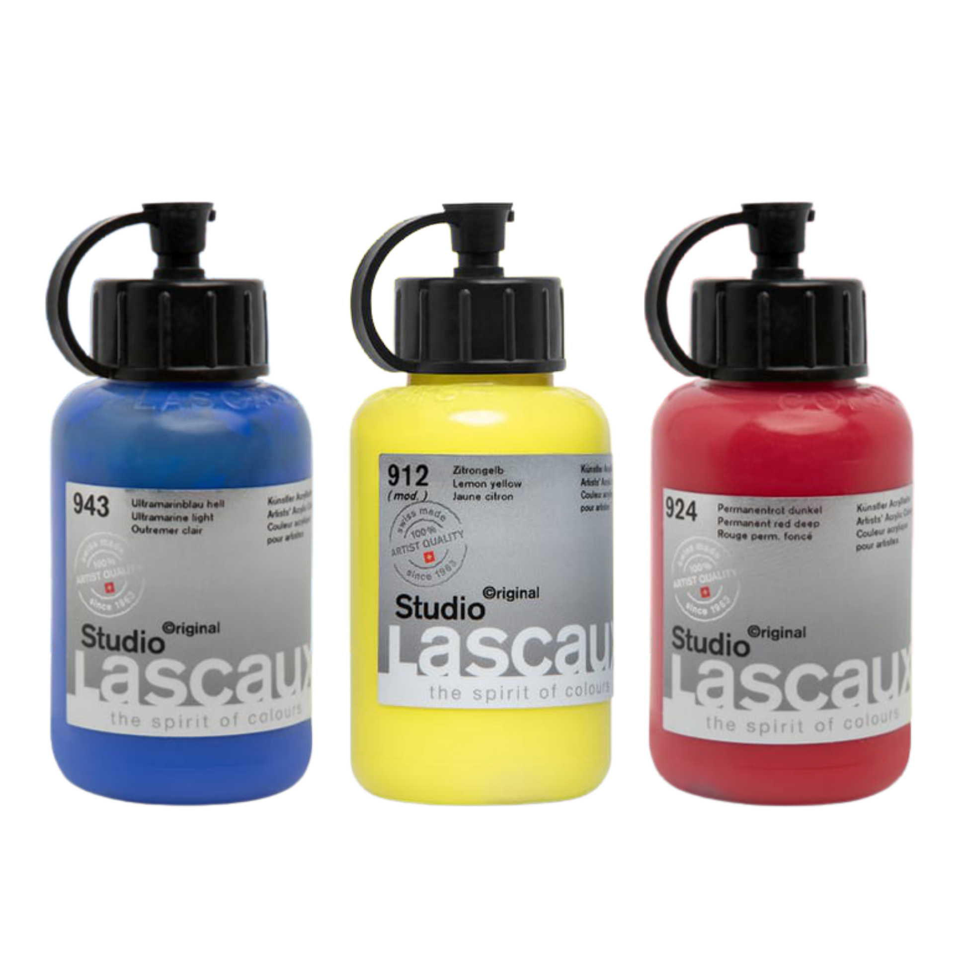 Lascaux Studio Original is a true studio workhorse: a highly pigmented, professional acrylic designed to move effortlessly between fine art, design, and large-scale work. It has a smooth, viscous body that feels controlled without being stiff, giving you excellent coverage straight from the bottle and predictable behaviour when thinned with water.