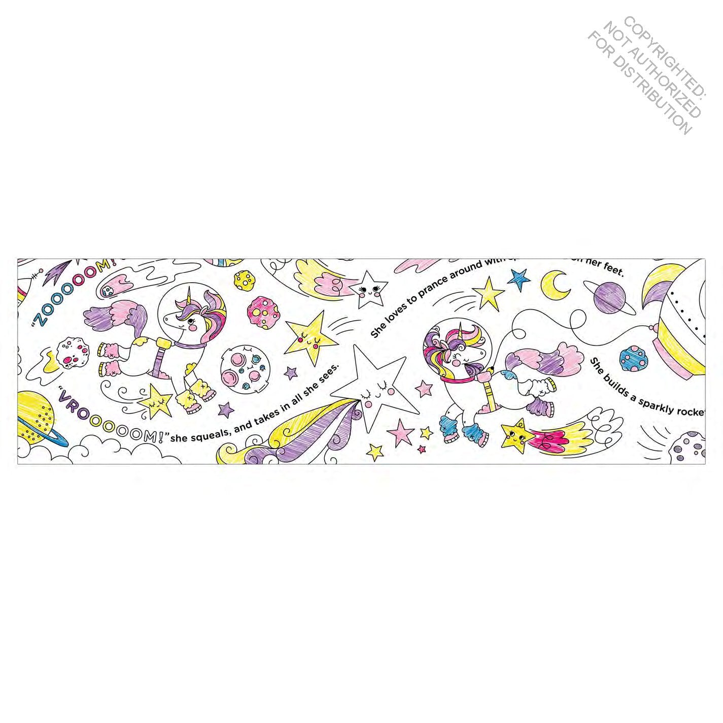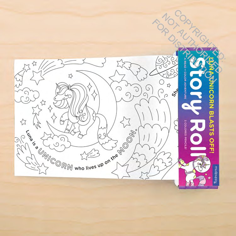 Mudpuppy's Luna Unicorn Blasts Off! Story Roll is a read and color adventure. Children ages 4+ will enjoy coloring 8 feet of unicorns in space while learning to read a few sentences that tells their story along the way. Includes 5 colored pencils.