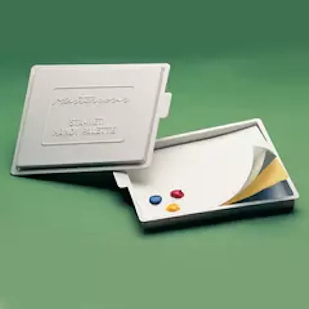 Measuring a compact 8 " Ă 7" Ă 1", this palette is the perfect size for small artworks, for travel or the classroom. Masterson's patented Sta-Wet system keeps your acrylic and water-based paints moist on the open palette for hours. When the lid of the palette is closed the paints will stay in workable condition for days or even weeks.