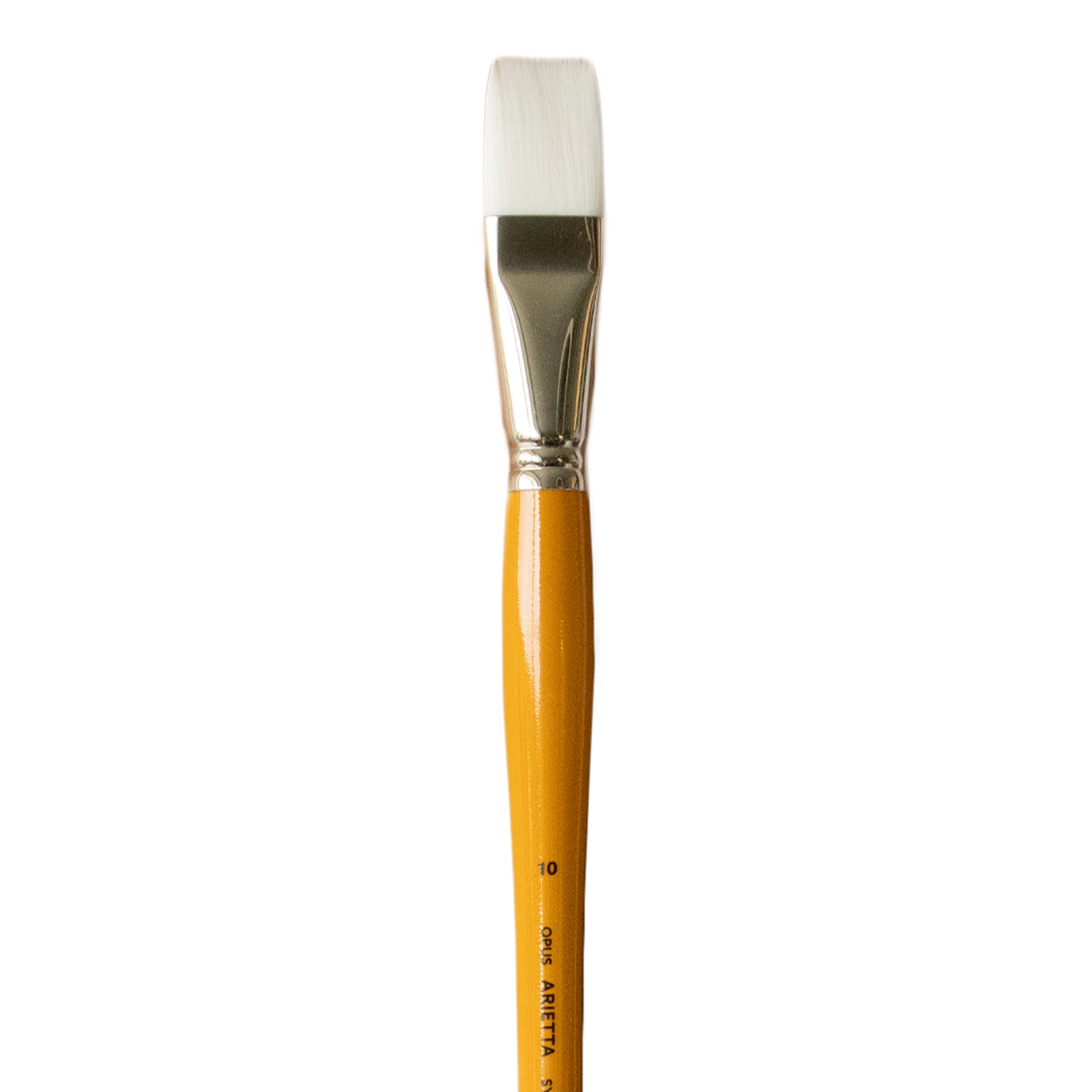 Opus Arietta Acrylic Brushes are perfectly suited to acrylic painting. Soft, interlocked synthetic fibre hairs ensure maximum paint load for creating dense colour and dramatic stroke contrast. The long, polished wood handles allow a range of hand positions and maximum control. The Opus Arietta is a quality brush at an excellent price.