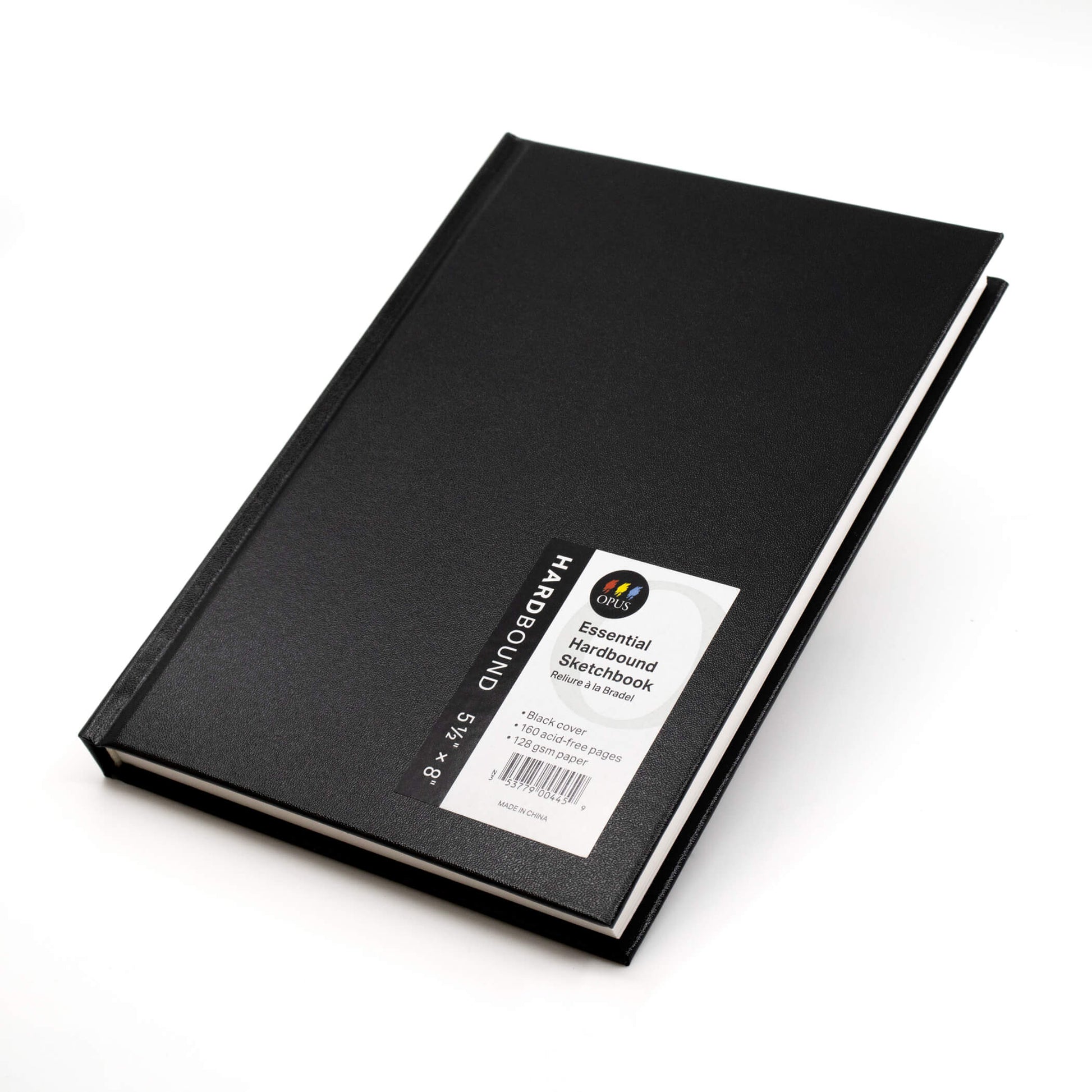 The Opus Essential Hardbound Sketchbook has a durable black hardcover with 160 pages of 128 gsm, acid-free, medium-tooth paper. This sketchbook opens flat for easy maneuvering, making it ideal for quick sketching with graphite, coloured pencils, charcoal, pen and ink, markers, and light dry brush work.