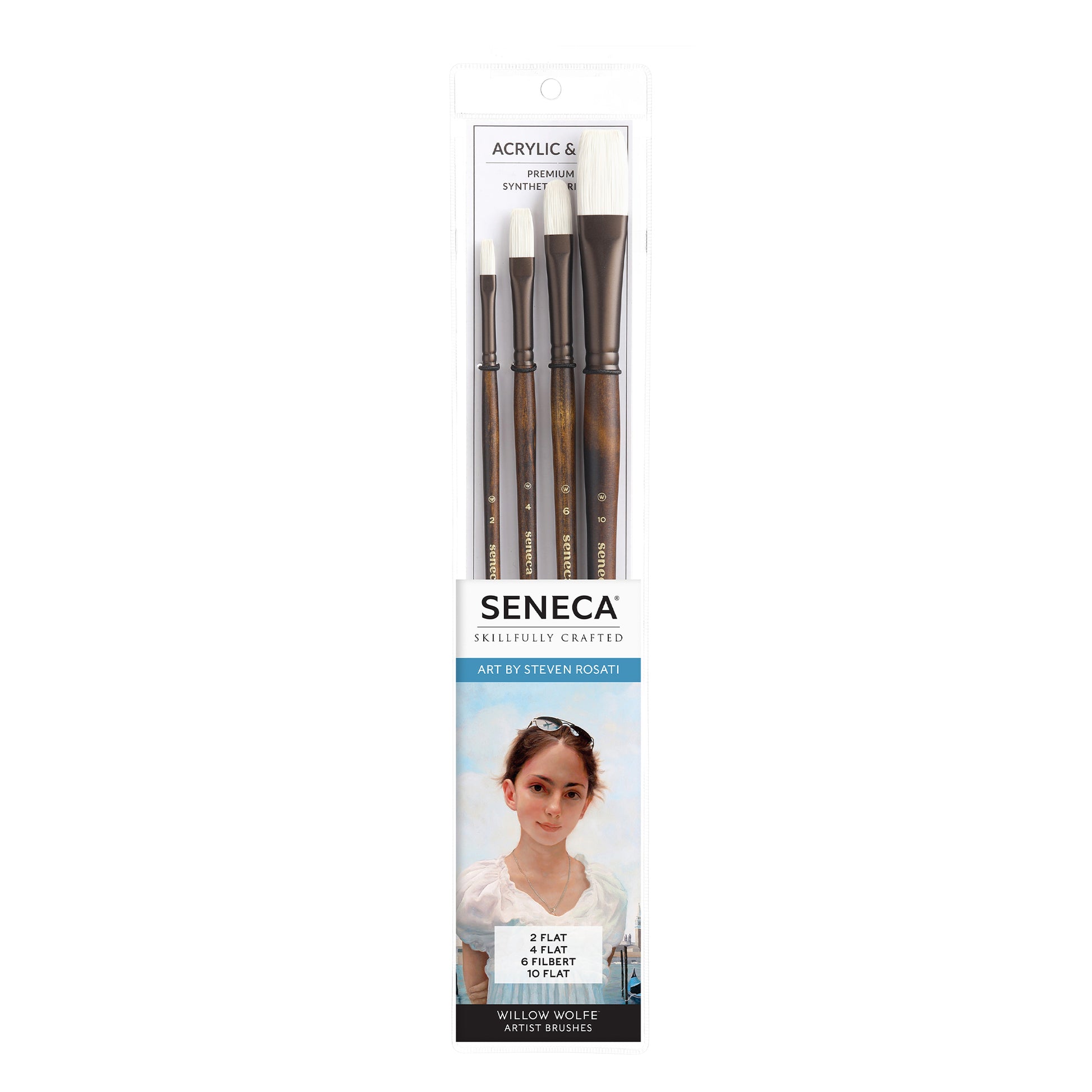 Seneca is made with premium, interlocked synthetic bristle and offers the perfect balance of spring and snap. Seneca paint brushes can be used with acrylic, oil and water mixable oil paints. Seneca is interlocked and designed to ensure that the brush retains its shape for control and placement of color, releasing paint evenly from expertly tailored synthetic filaments.