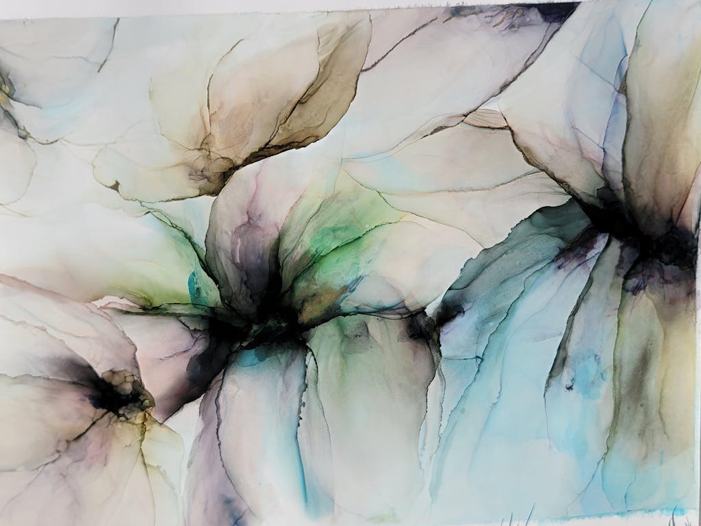 Because the surface is slick and non-absorbent, you can achieve non-traditional effects using traditional media, and non-traditional ones as well: acrylic painting, watercolour, alcohol inks, markers, oil pastel, pencil/graphite, silkscreen, monotype and offset.